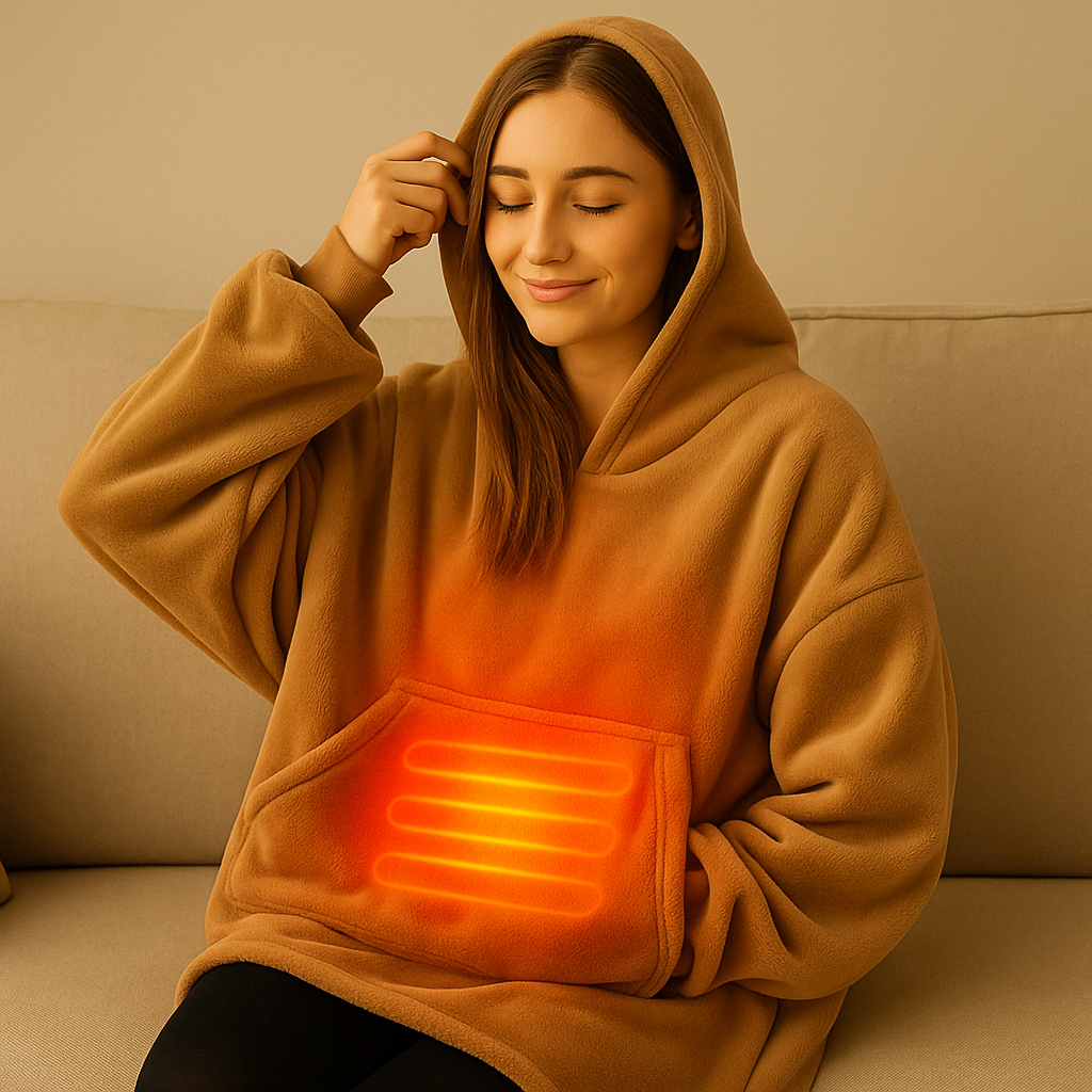 Laisse-toi envelopper par la douce chaleur du CosyHug™ Édition Chauffante, ton indispensable bien-être pour passer l’hiver sans radiateur.